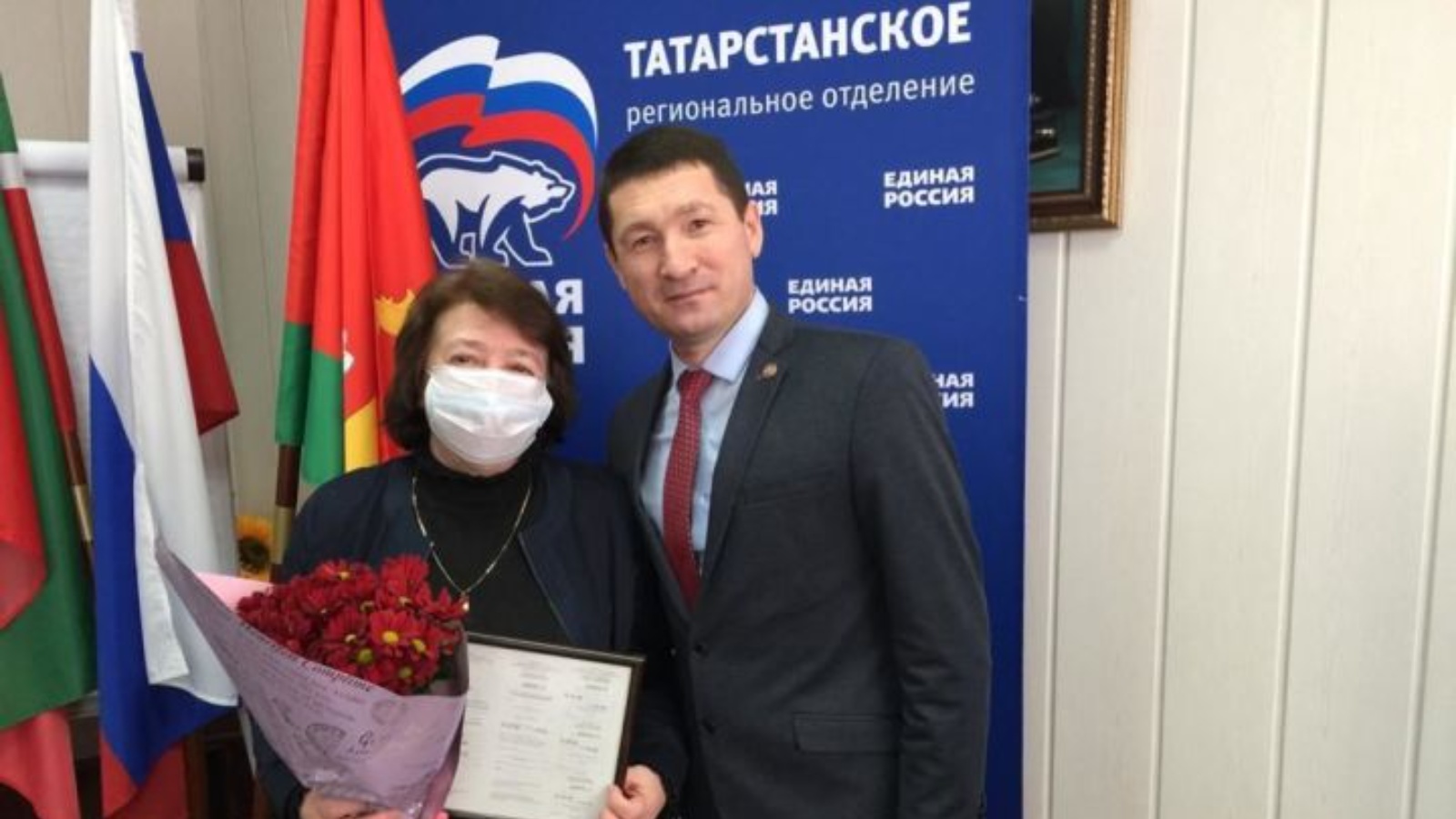 Вручение состоялось в администрации района. Санаторную путевку медработнику Пестречинской ЦРБ Гуляре Хисамовой вручил глава района Ильхам Кашапов.
