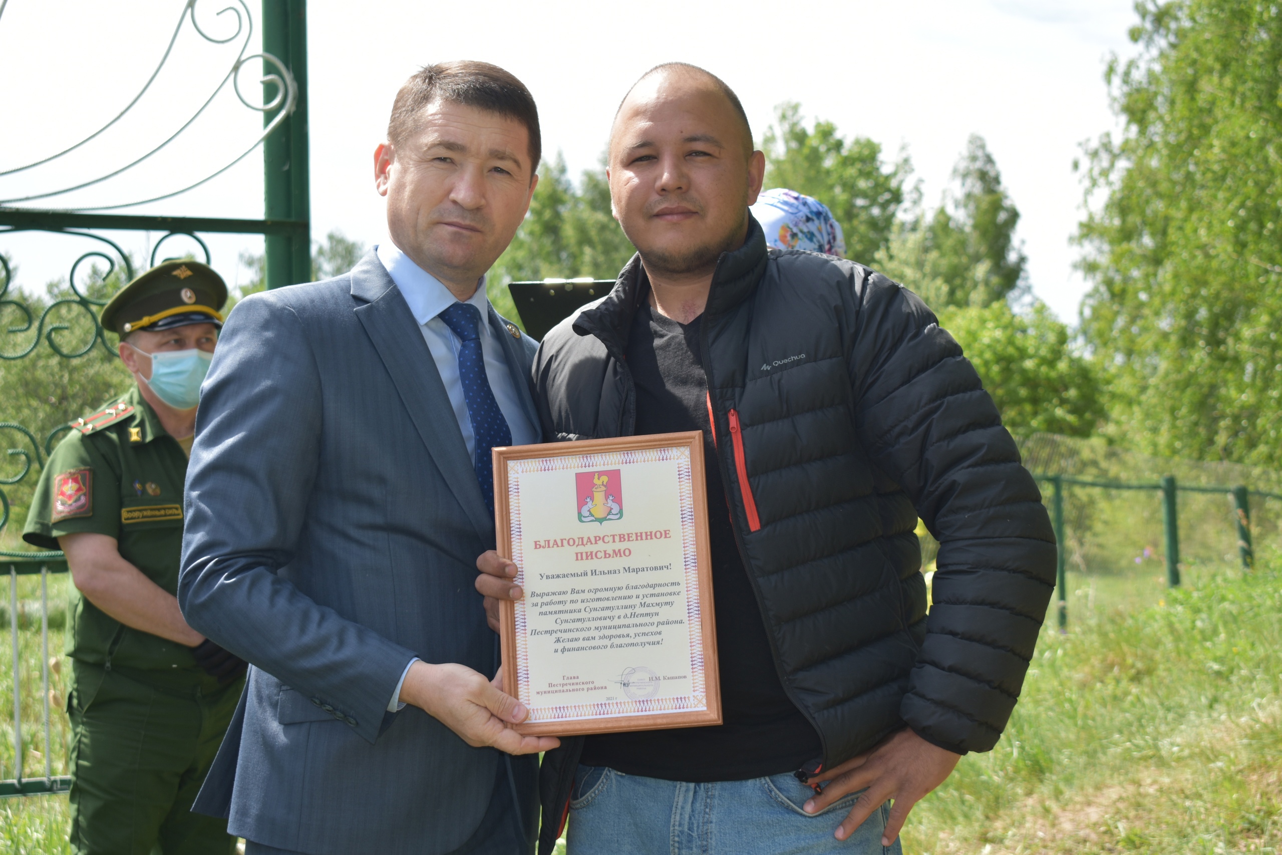 В торжественной церемонии его открытия приняли участие местные жители, родственники, глава района Ильхам Кашапов и военный комиссар Владимир Гузич.