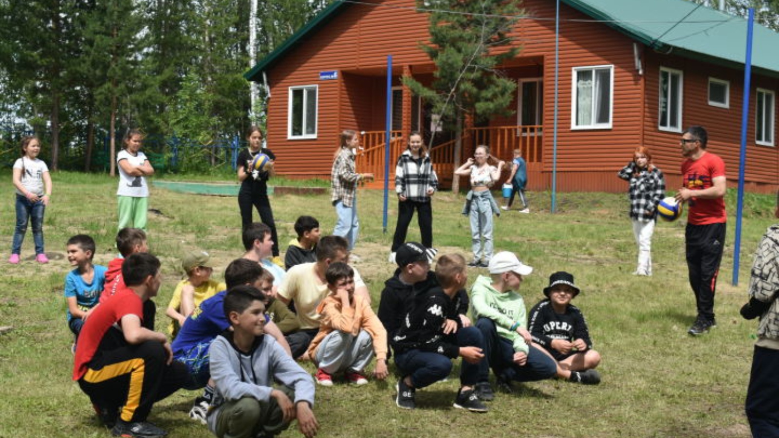 С детьми всё время находятся вожатые, это студенты и выпускники вузов. Есть отдельно спортивный педагог, который устраивает активный отдых ребятам играми с мячом на свежем воздухе.