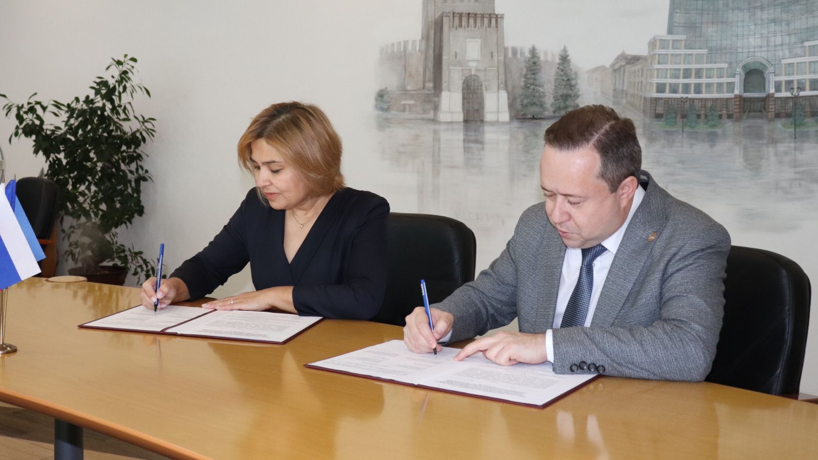 Управляющий Отделением СФР по Республике Татарстан Эдуард Вафин и руководитель филиала государственного фонда поддержки участников специальной военной операции «Защитники Отечества» Гузель Удачина подписали соглашение о сотрудничестве.