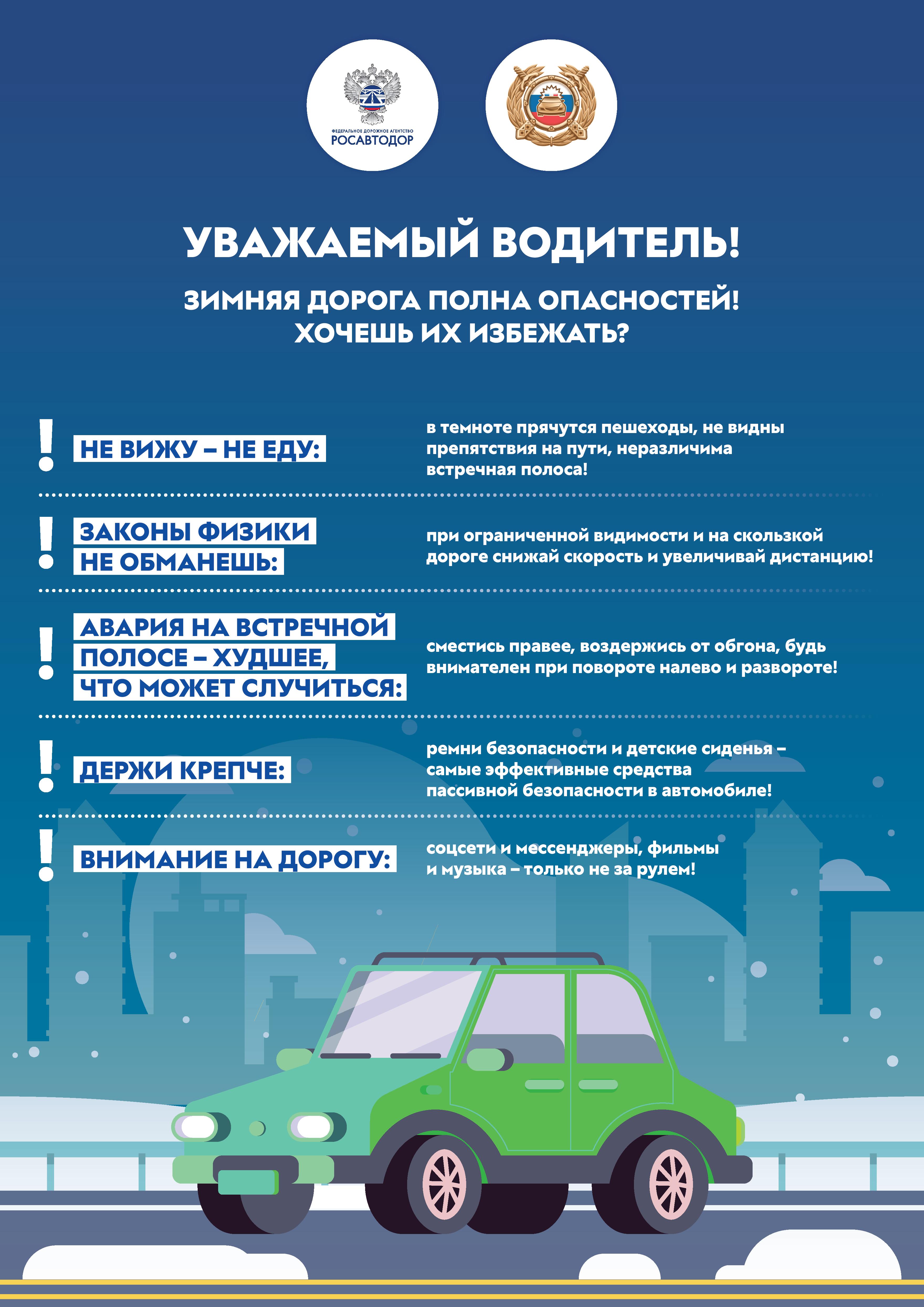 Федеральным дорожным агентством «Росавтодор» и Главным управлением по обеспечению безопасности дорожного движения Министерства внутренних дел Российской Федерации разработаны памятки по безопасности дорожного движения, направленные на профилактику грубых нарушений Правил дорожного движения.