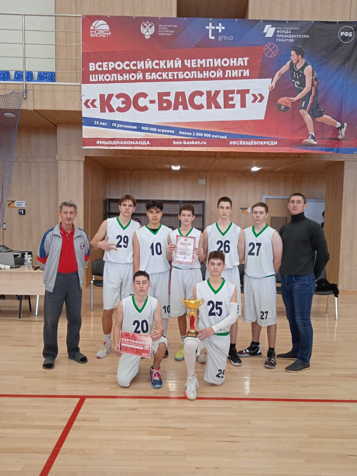 Команда награждена кубком и сертификатом на приобретение спортивной формы «КЭС - БАСКЕТ».