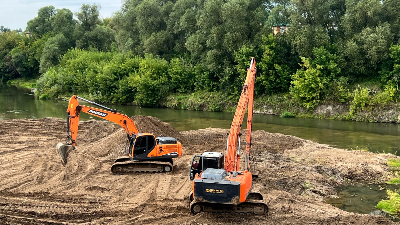 На сегодняшний день проведена работа по очистки одной береговой полосы. Сейчас ведется углубление, то есть в ходе работ убирается образовавшийся островок. Этот остров образовывает воронки, которые становятся причиной размыва берегов.