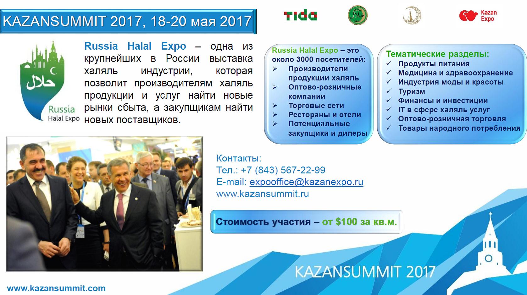 С каждым годом мероприятие наращивает масштабы. В 2016 году в Саммите приняли участие более 1500 представителей: инвесторы и бизнесмены из 51 страны мира. В рамках Саммита пройдет одна из крупнейших и единственная в Поволжье выставка продукции Халяль «Russia Halal Expo».