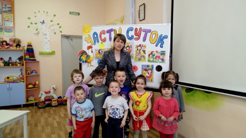 26 апрель көнне «Шатлык» приютында кече төркем тәрбиячесе Тимофеева И. А. «Тәүлекнең өлешләре» дип исемләнгән ачык дәрес үткәрде. Чараның максаты: балаларның иртән, көндез, кич һәм кич белән эшләүләре, күрү сәләтен һәм күрү хәтерен,фикерләвен үстерү, хәрәкәтләрне имитацияләргә, вакытлы төшенчәләрне тасвирлаучы сүзләр хисабына сүзлекне баетырга өйрәтү. Тәүлекнең бер өлеше турында белемнәрне ныгыту. Кирәкле сурәтләр табарга. Формалаштыру хисе вакыт. Түземлелек тәрбияләү. Әлеге чарага әзерлек вакытында мәктәпкәчә яшьтәге 8 бала җәлеп ителде. Әлеге чара мәктәпкәчә яшьтәге балалар һәм кече мәктәп яшендәге балалар тәрбияләүдә элементар математик күзаллауларны формалаштыру буенча дәресләр системасына керә. Чара вакытында балаларның үз-үзеңне тоту күнекмәләре эшкәртелде (башкалар җавапларын тыңлый белү, биремнәрне игътибар белән тыңлый белү һ.б.). Дәреснең эчтәлеге күрсәтелгән темага туры килде. Үзенчәлекле һәм кызыклы физминутка үткәрелде.