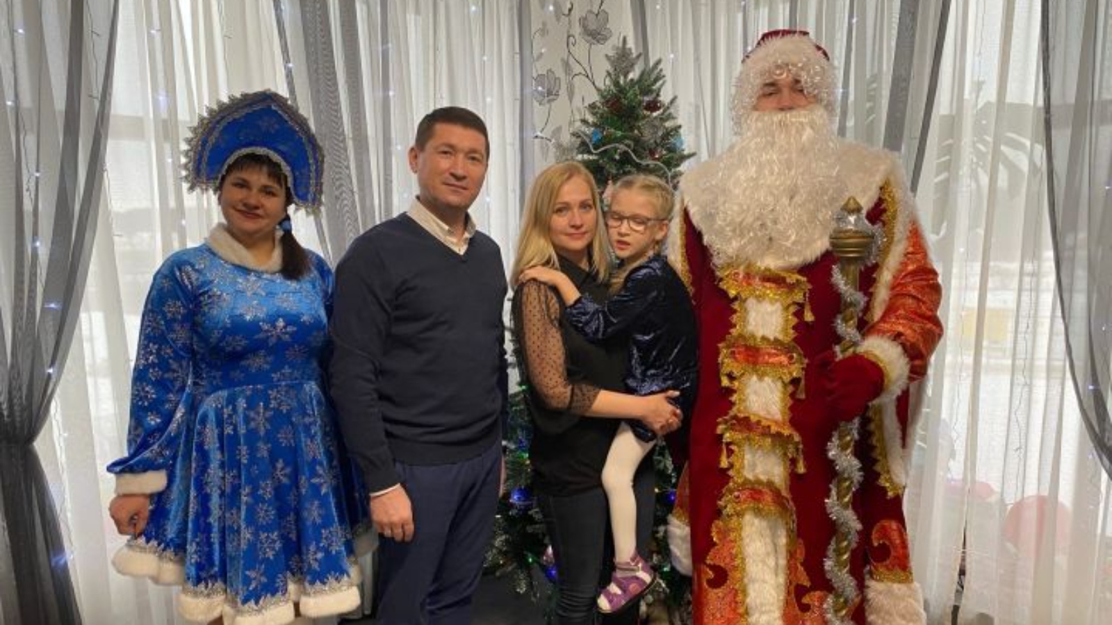 Аңа кунакка Кыш бабай белән Кар Кызы һәм район башлыгы Илһам Кашапов килде.