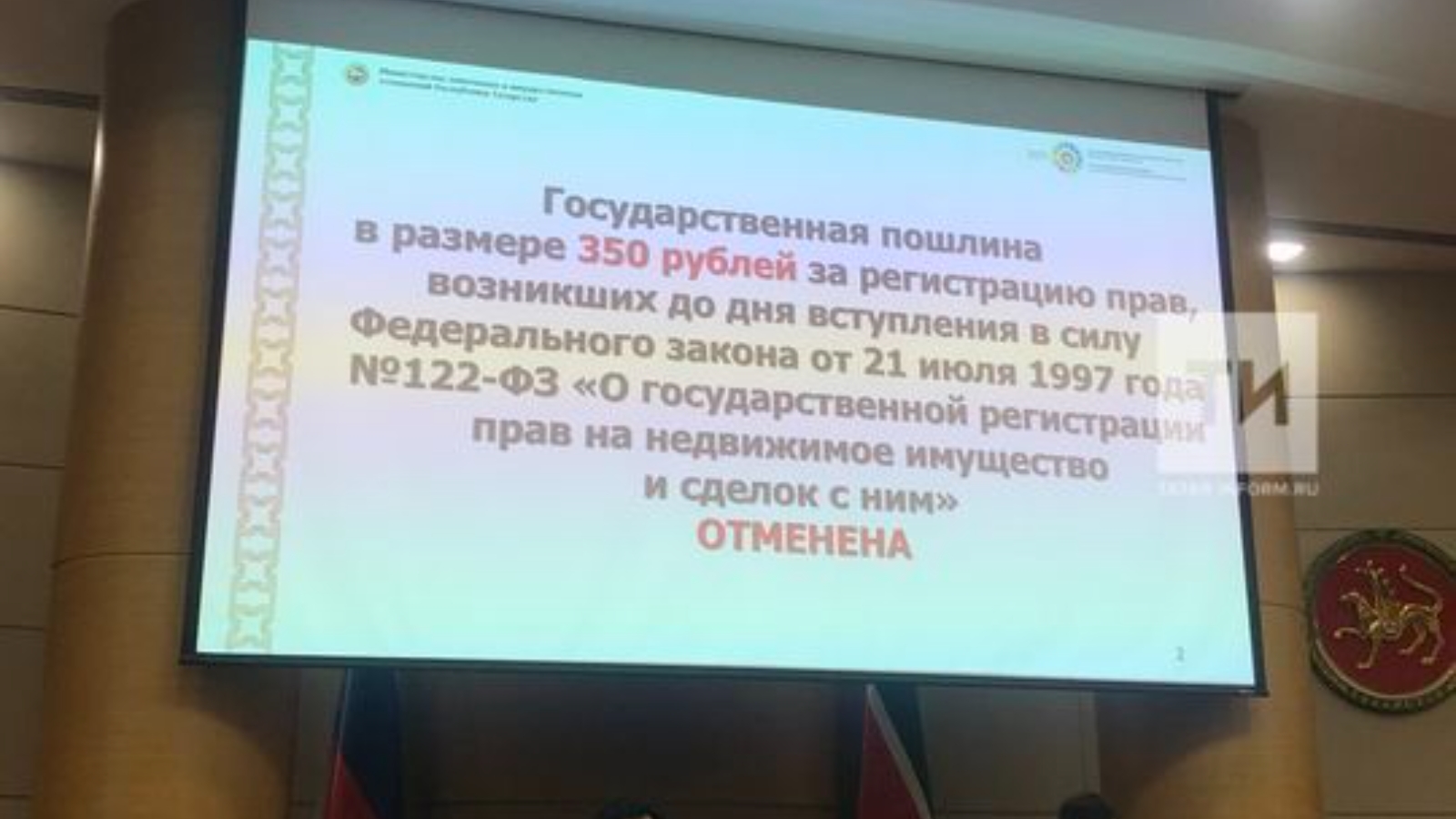 Татарстанда ЕГРНда күчемсез милеккә хокукны теркәү өчен 350 сум күләмендә дәүләт пошлинасын гамәлдән чыгардылар.
