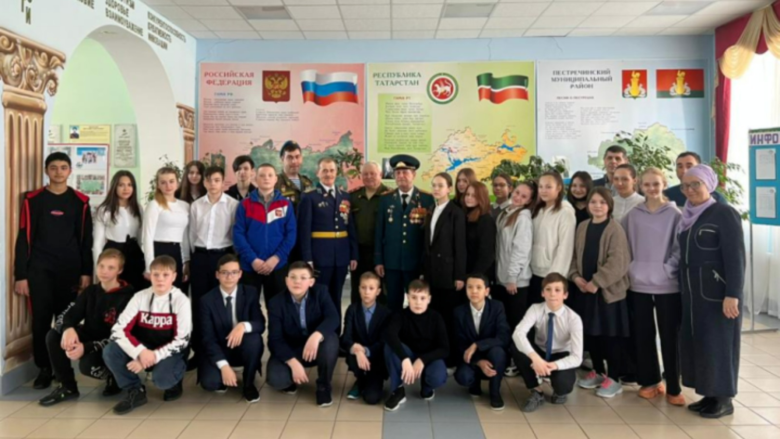 Егетләр янына кунакка Совет офицерлары берлегенең халыкара оешмасы вәкилләре подполковник А.П. Гнездилов, подполковник Н.И. Соловьев, майор Ф.Ө. Вәлиев, кече сержант Р.Т.Хәбибуллин килде. Алар Россия Федерациясенең кораллы көчләре турында, алар алдында нинди бурычлар торуын, шулай ук үз хезмәтләре турында сөйләделәр.