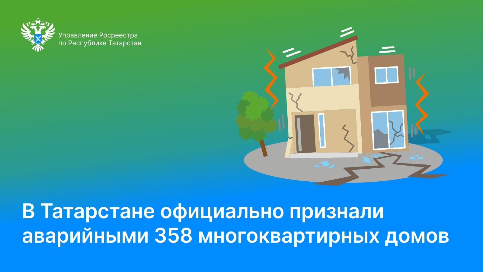 Татарстан Росреестры мәгълүматлары буенча, агымдагы елда ЕГРНга Татарстанда яшәү өчен яраксыз дип танылган ике мең күчемсез милек объекты турында өстәмә мәгълүматлар кертелгән. Барлыгы Татарстанда рәсми рәвештә 358 күпфатирлы йортны авария хәлендә дип таныдылар.