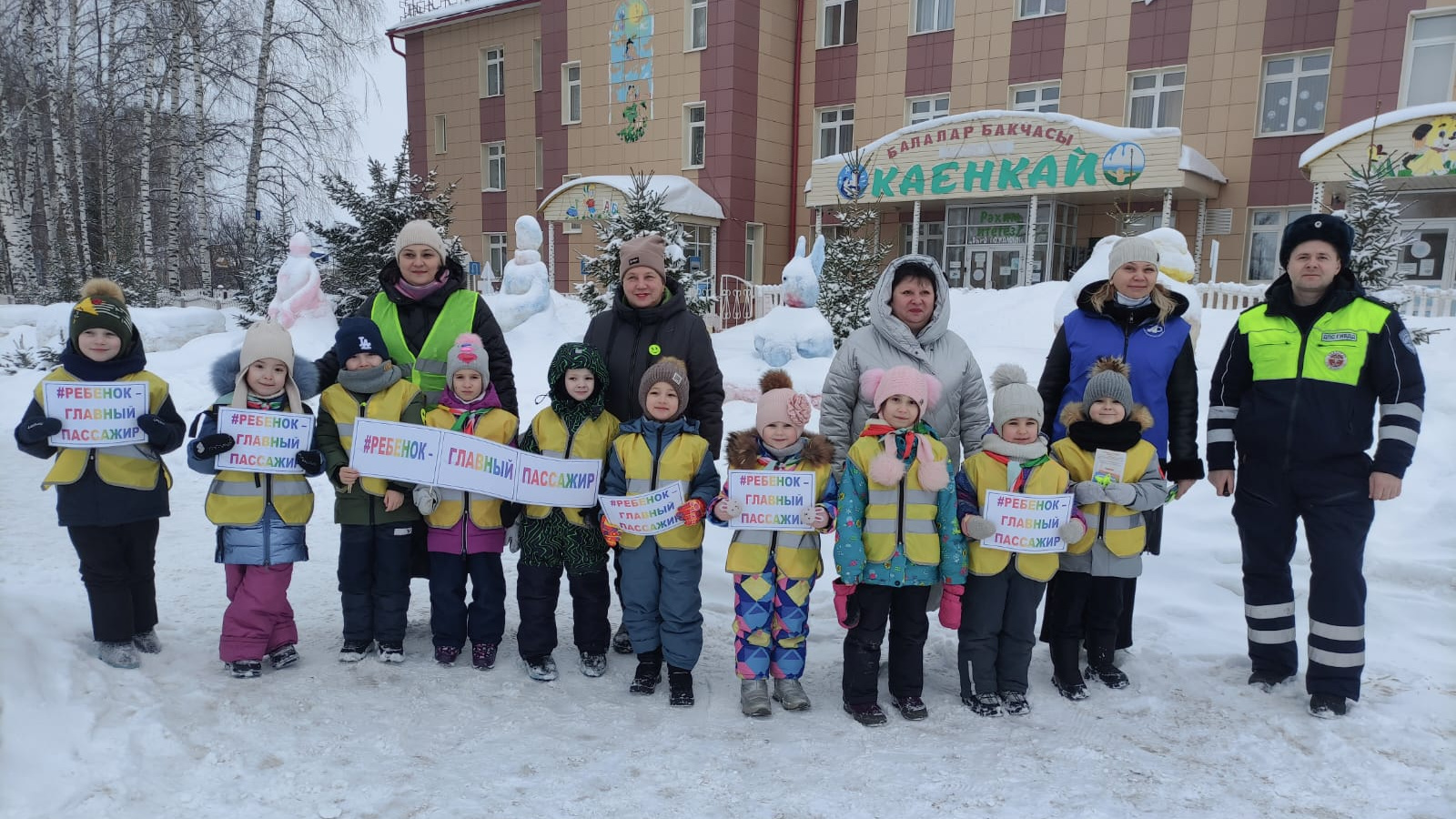 Акция "Юл хәрәкәте куркынычсызлыгы" ДБУ, Дәүләт автоинспекциясе, "Каенкай" балалар бакчасы ЮИД отрядлары белән берлектә узды.
