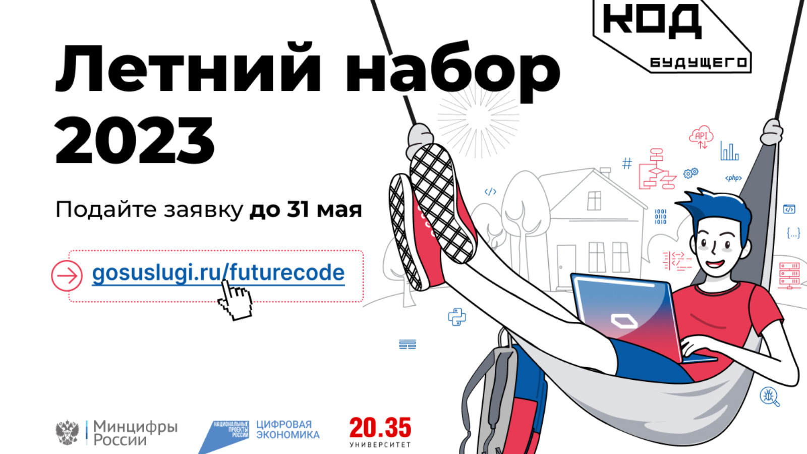 «Киләчәк коды» проекты «Цифрлы икътисад» иклүләм программасының «ИТ-тармакның кадрлар потенциалын үстерү» федераль проекты эгидасы астында Россия Цифрлы үсеш министрлыгы тарафыннан оештырылган. Белем бирү проектының операторы - Университет 2035.