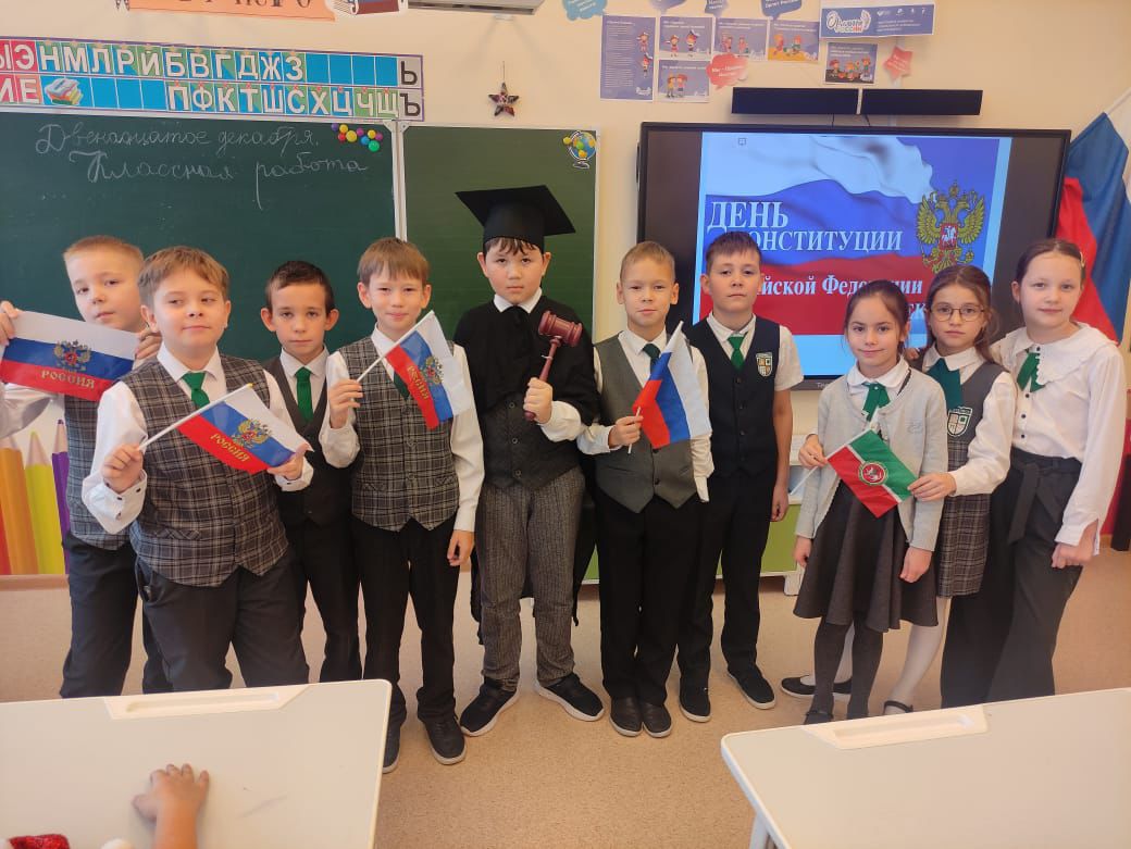 Мәктәп укучылары конституция төзелү тарихы, аның структурасы, Россия гражданнарының хокуклары һәм бурычлары, илебез символларының барлыкка килү тарихы белән таныштылар.
