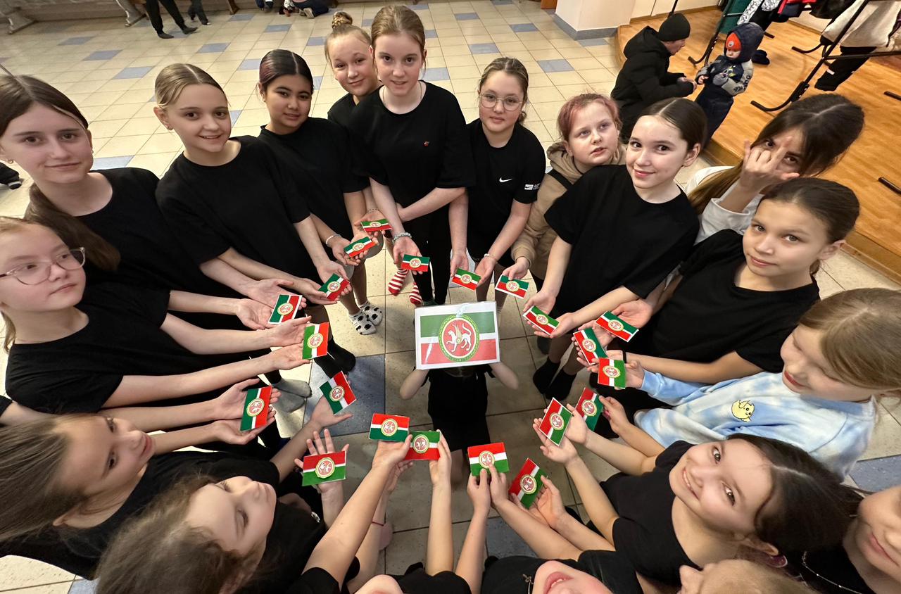Чара азагында катнашучылар үз символларын - Татарстан Республикасы Гербы ясадылар.