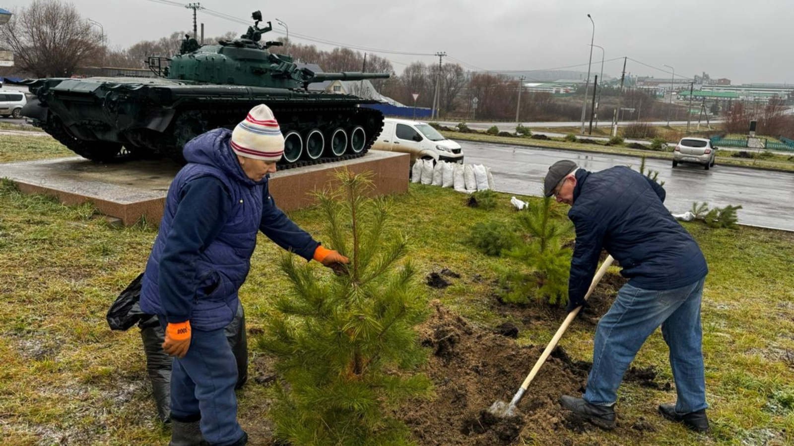Ленино-Кокушкино авылында бүген акция узды - Бөек Ватан сугышында һәлак булганнар һәйкәле территориясендә наратлар утырттылар.